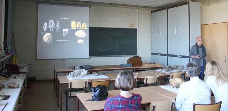 Plusieurs sessions conduites par Géraldine Garcia (maître de conférence, Université de Poitiers) ont permis aux visiteurs de découvrir les coulisses du laboratoire. Le parcours des fossiles a été présenté, depuis leur découverte sur le terrain jusqu’à leur conservation dans les collections.