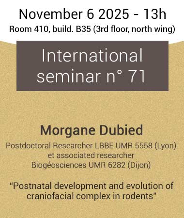 H@774mL22 2025-10-29T10:14:00+00:00November 6 2025 - 13h: international seminar Palevoprim n° 71 Speaker Morgane dubied Postdoctoral Researcher LBBE UMR 5558 (Lyon) & Associated Researcher Biogéosciences UMR 6282 [...]